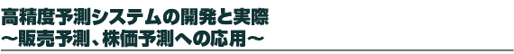 | 高精度予測システムの開発と実際 〜販売予測、株価予測への応用〜 |